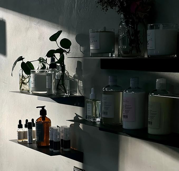 - DIMENSIONS & DETAILS: Measuring 36-inches long x 8-inches in depth, our steel floating shelf is made from 14 gauge raw steel and professionally powder coated matte black. The weight of the shelf is 8 LBS. It's perfect for displaying books, plants, bottles, picture ledges, and retail displays