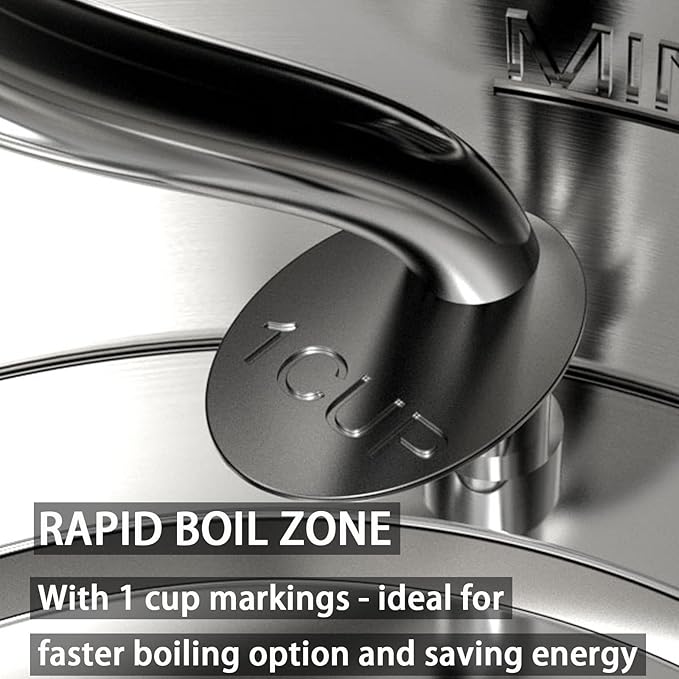 - RAPID BOIL ZONE β Bright horizontal markings inside the kettle help you measure out 1 cup of ultra-fast boiling. Boil a cup of water in 60 seconds.