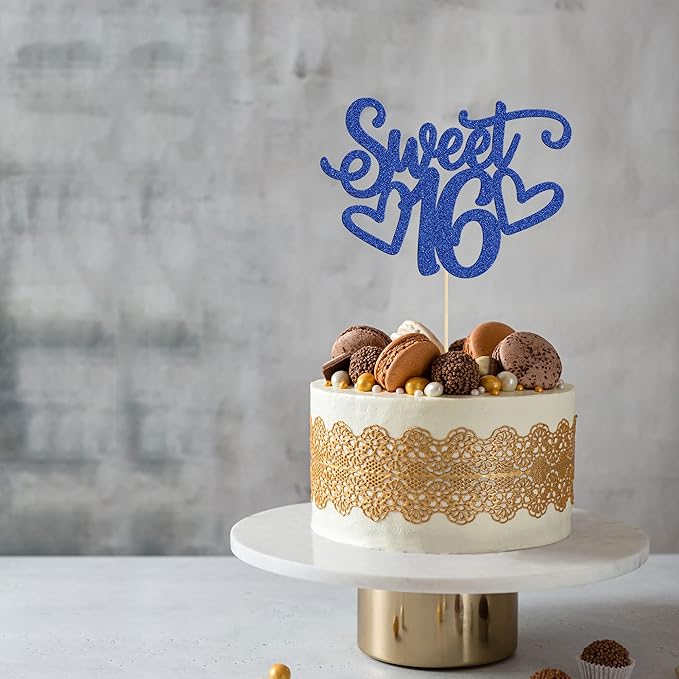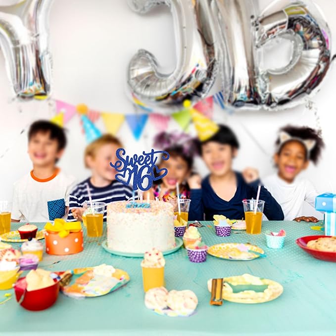 Gyufise 1Pc Sweet Teenager 16 Cake Topper Glitter 16th Birthday Cake Pick for Cheers to 16 Years Old 16th Birthday Party Cake Decorations Supplies Blue