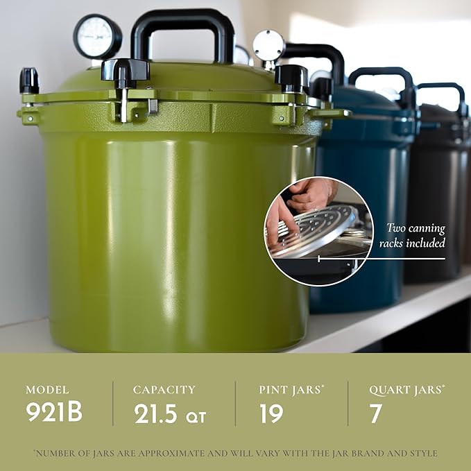 All American 1930-21.5qt Pressure Cooker/Canner (The 921), Kelp - Exclusive Metal-to-Metal Sealing System - Suitable for Gas, Electric, or Flat Top Stoves - Made in the USA
