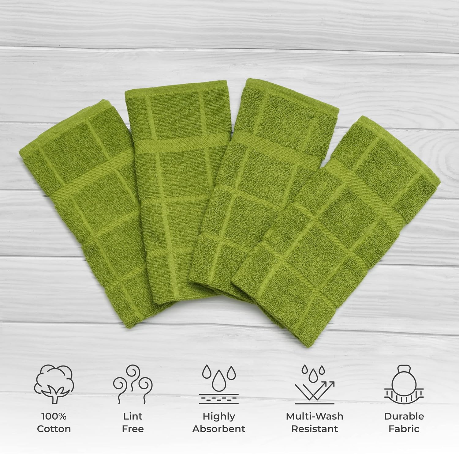 100% Cotton Terry Dish Towels, 4 Pack Plain, 16 x26 Inches, Super Soft and Absorbent Kitchen Towels, Perfect for Kitchen Cleaning and Dish Washing | Green