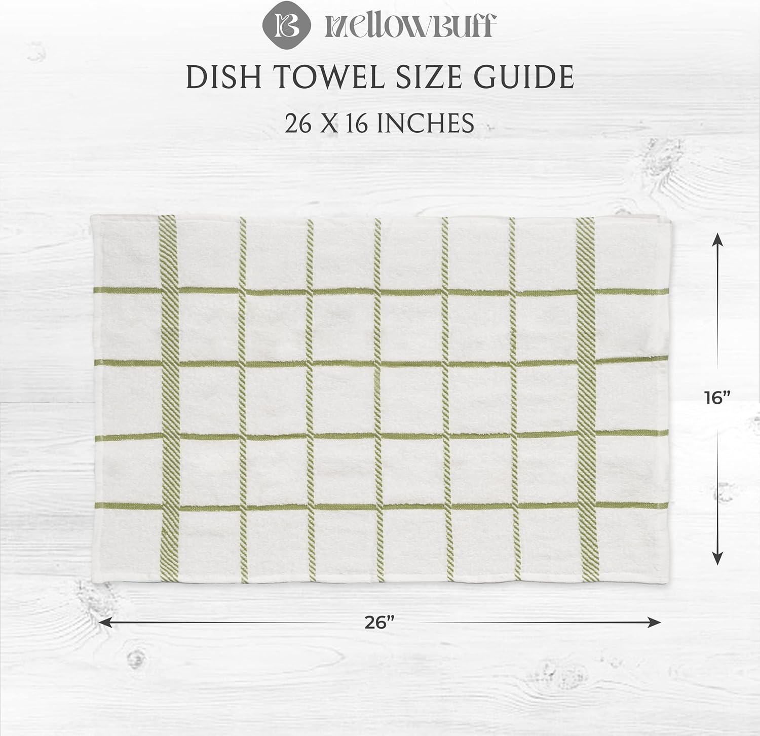 100% Cotton Terry Dish Towels, 4 Pack Checks, 16 x26 Inches, Super Soft and Absorbent Kitchen Towels, Perfect for Kitchen Cleaning and Dish Washing | Green