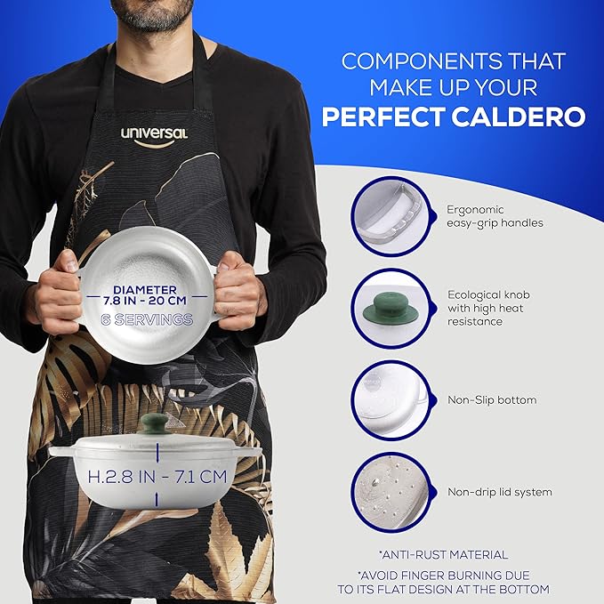 - ⚠️ EXTRA COMPACT SIZE – IDEAL FOR SMALL MEALS! This 1.8 QT Caldero is designed for small-batch cooking, perfect for couples, small families, or meal prepping. It holds up to 6 servings of cooked rice, making it a great option for daily home cooking but NOT intended for large portions or commercial use. If you need a bigger pot, check our larger sizes!