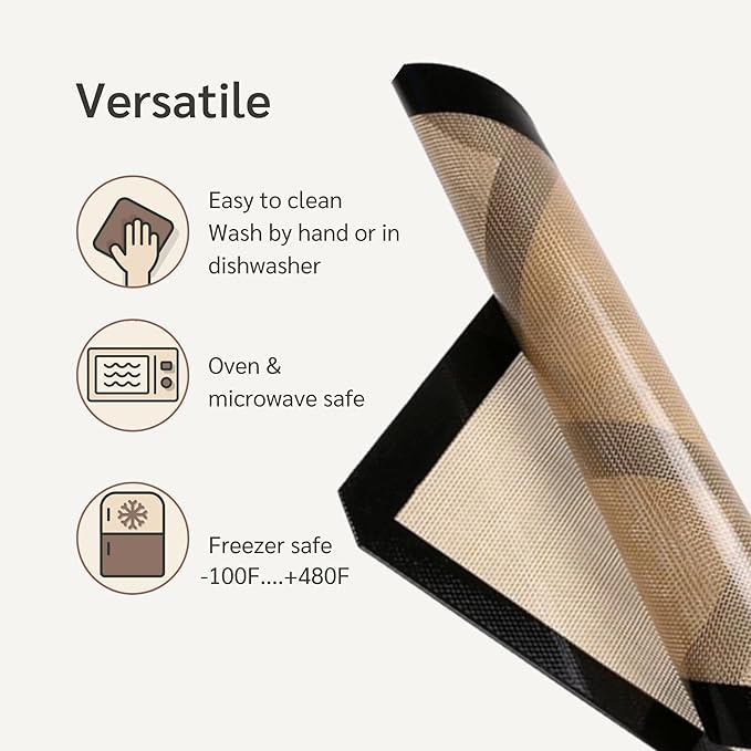 - π§ DURABLE - extra thick baking mats are freezer safe, can be used in oven and microwave up to 480F