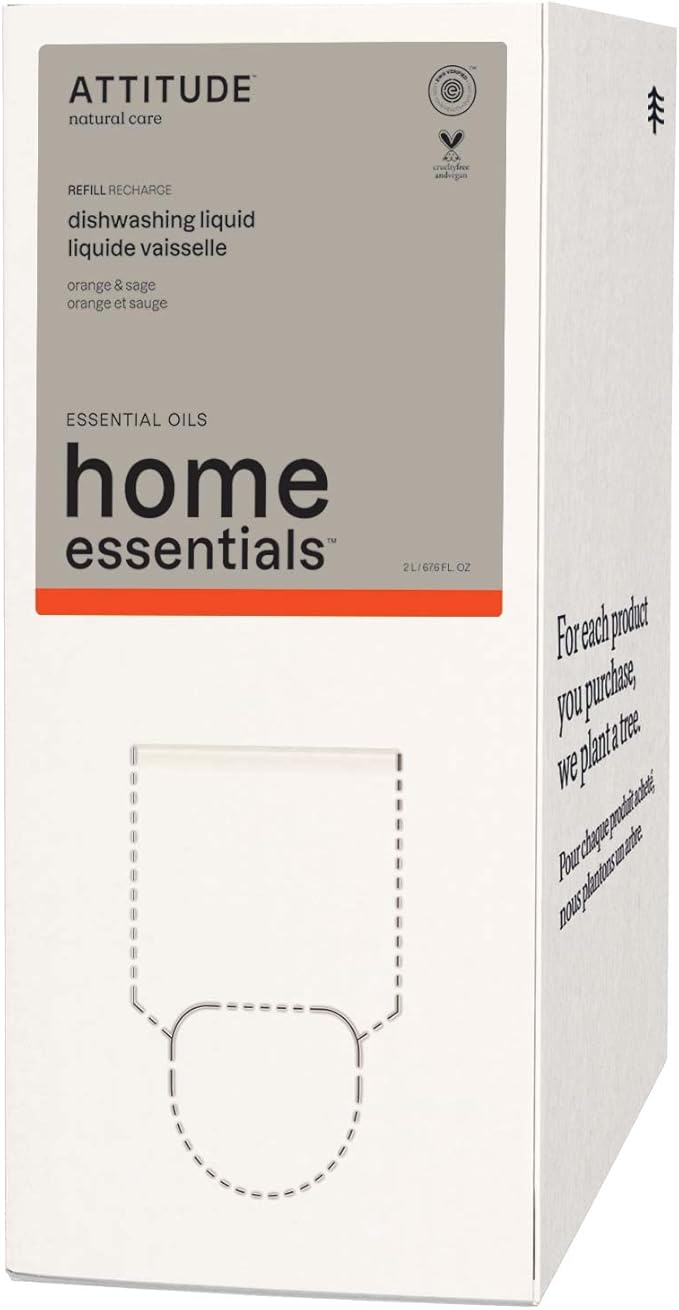 ATTITUDE Dish Soap, EWG Verified, Plant and Mineral-Based Ingredients, Vegan and Cruelty-free Household Products, Orange and Sage, 67.6 Fl Oz