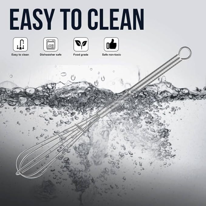 - ● EASY TO CLEAN & HANDY HOOK- Eddeas mini wire whisk design as zero residue, hand wash easily and dishwasher safe. Every whisk bottom of handle has a hook, convenient for you to dry them while finish the washing.