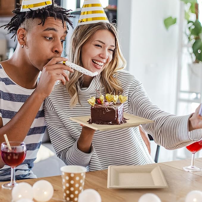 - Daily Event: Whether it's for daily meals, camping trips, picnics, birthdays, or weddings, these disposable square dinner plates are the perfect choice for those who want to reduce their impact on the environment without sacrificing quality or convenience