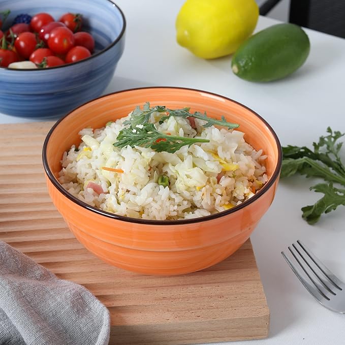 - Non-slip& Double-insulated Rim Design :Very simple look and glossy surface design allows soup bowls to be stacked neatly and tightly,doesn't take up too much space in your kitchen.Decorated with double-insulated thick-edge rim and ripple lines makes you easier to hold HOT and COLD items in your hand and anti-slipping.