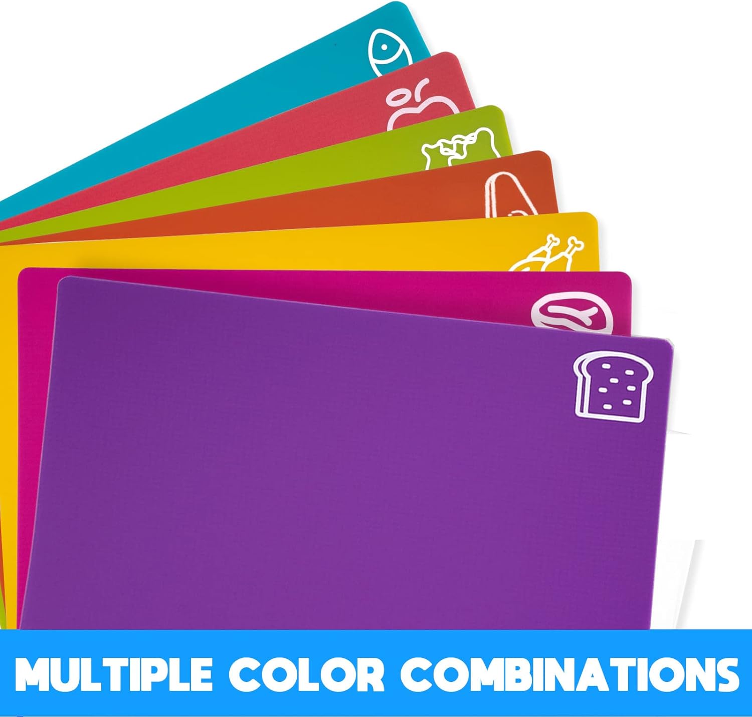 - Multicolor Set - The cutting board set is designed with rainbow colors, each color represents one kind of food. It could avoid food stringing due to mixing chopping board when cutting food.