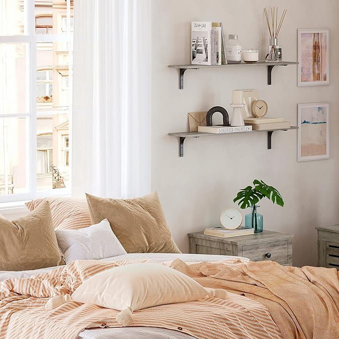 DINZI LVJ Long Wall Shelves, 39.4Inch Wall Mounted Shelves Set of 2, Extra Large Floating Storage Ledges with Sturdy Metal Brackets for Living Room, Bathroom, Bedroom, Kitchen, Gray Wash