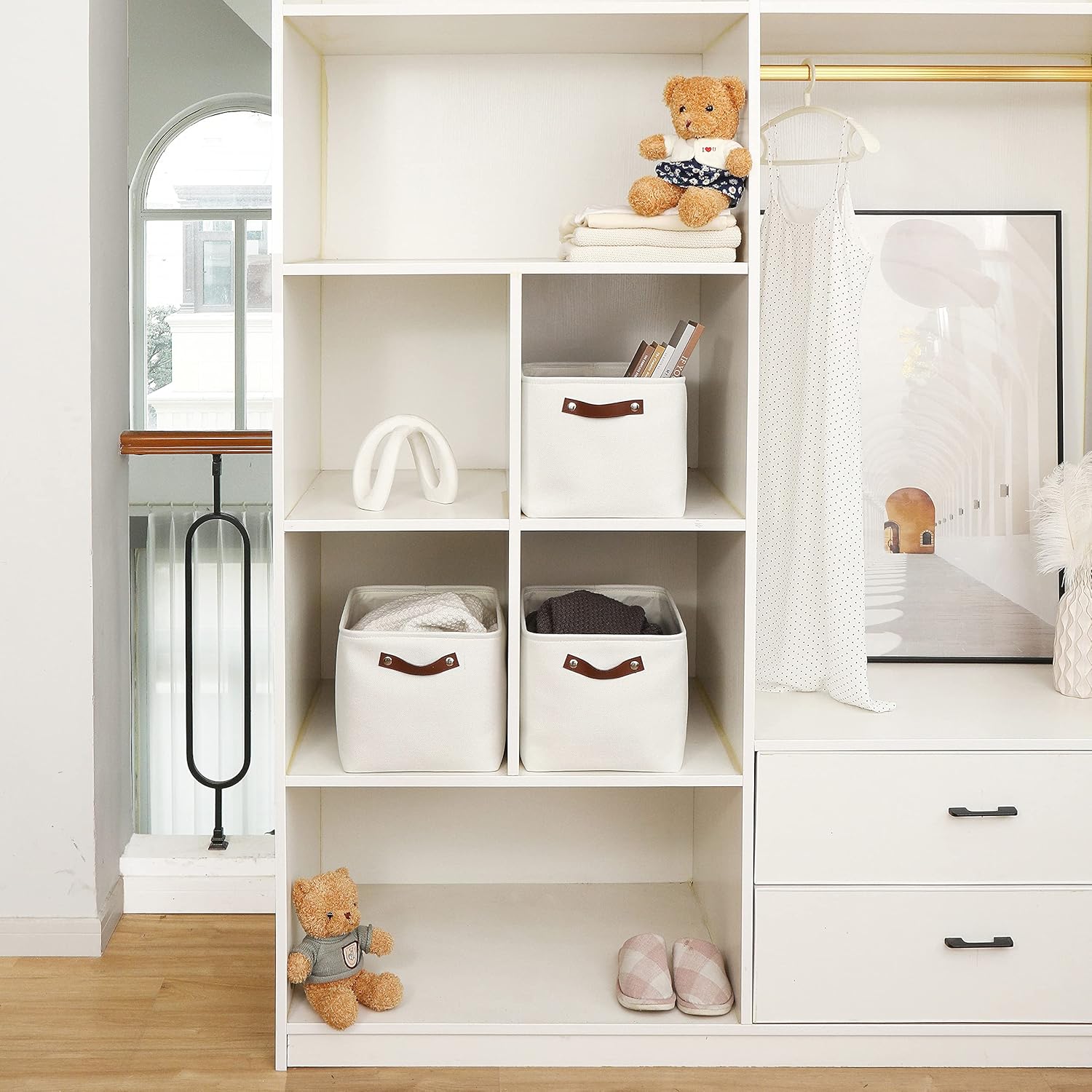 OrganiHaus Large Fabric Storage Baskets for Shelves 3 Pack | 15x11 inches Closet Bins Cloth Cubes Linen Organizers Basket - White Basket