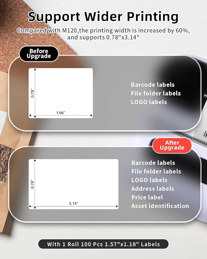 - Phomemo's New Flagship - Phomemo M220 Label Printer adopts Roma print head from Japan, new upgraded 20-80mm print width, supports printing wider and more types of labels; such as barcode, jars, price, clothes, QR, icon, also can print address labels, ingredient labels, shipping labels. Save you a lot of time handwriting labels and improve efficiency. (label maker not support 4 "x 6" label).