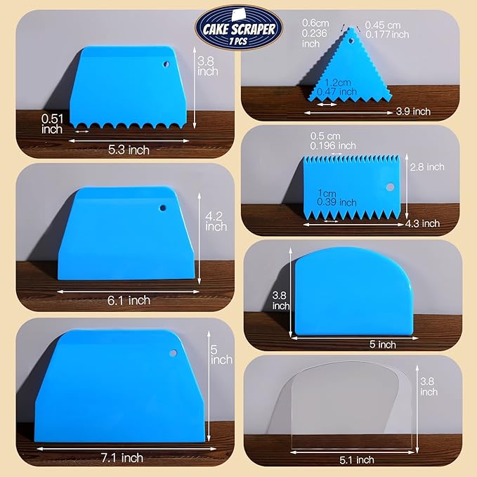 - Smooth Cakes Every Time: With 7 different scraper shapes, our cake scraper cake decorating comb set makes it easy to achieve perfectly smooth cakes every time. Impress your guests with your professional-looking cakes