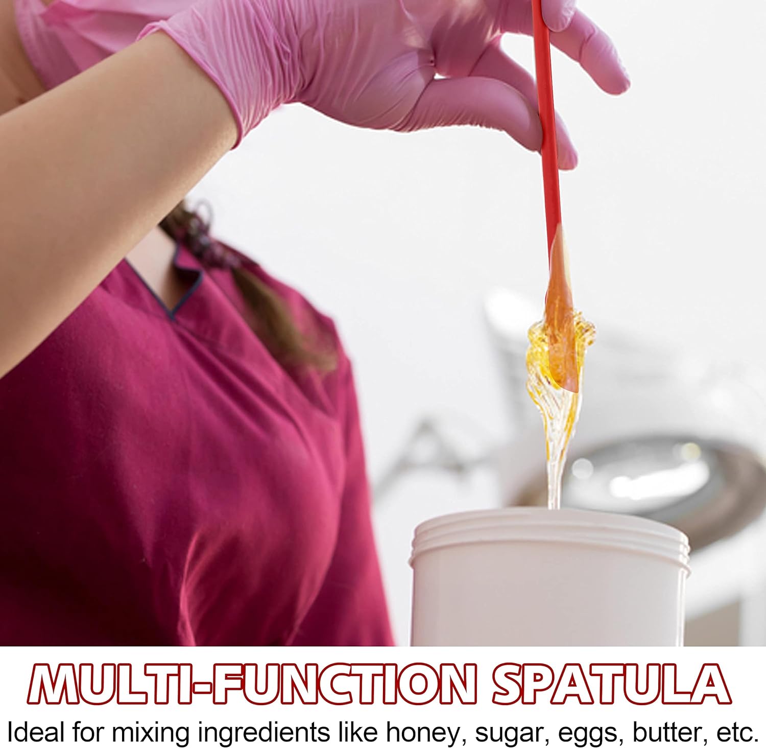 - WIDELY USED SPATULAS - Anaeat flexible mini spatula work well from the small jar to the large mixing bowl in your kitchen, perfect for stirring, scraping, and folding a wide variety of foods, also can be used to mix makeup or paints. Fit well with various containers of cosmetics, mustard jar, lotion, lip gloss, shampoo, conditioner, nail polish, peanut butter, ketchup, etc. Best choice for kitchen and beauty product!