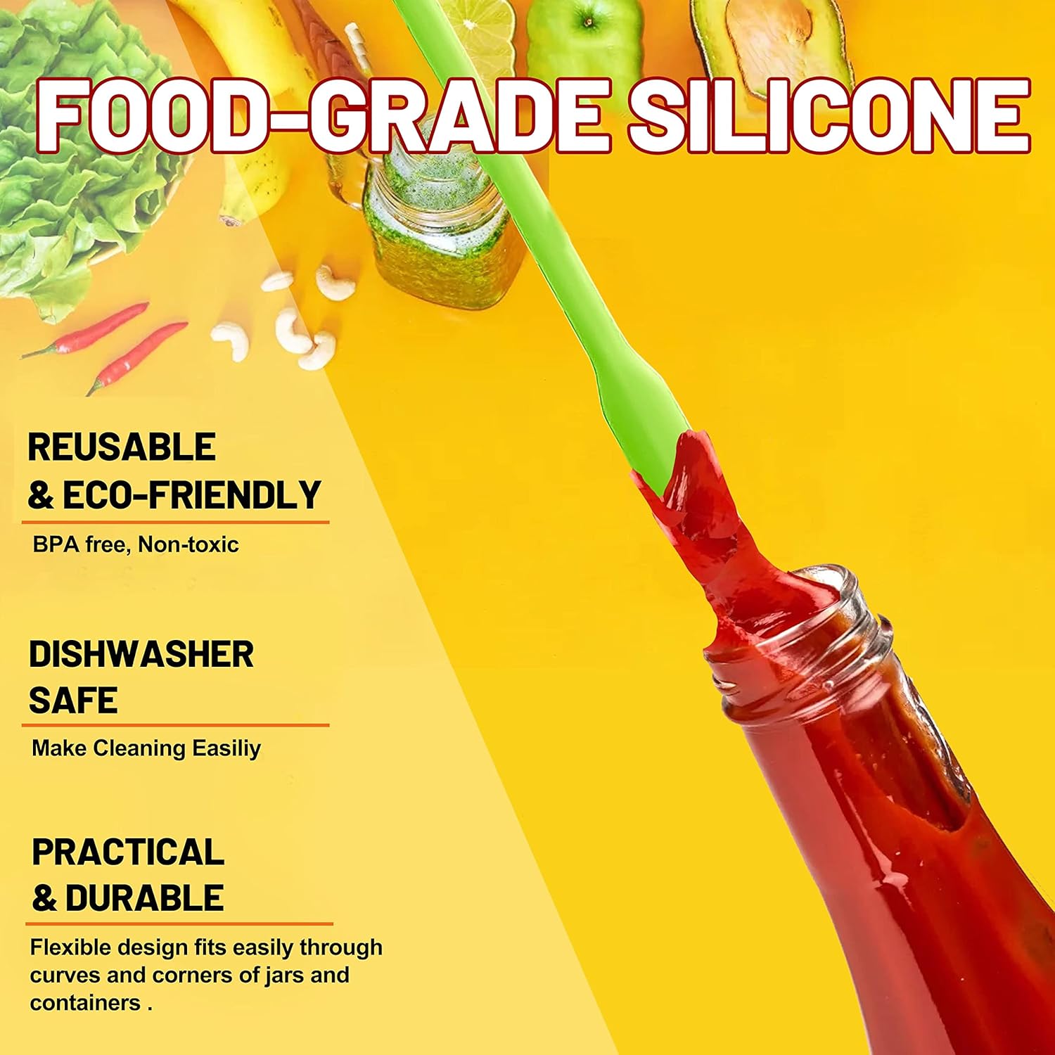 - FLEXIBLE SPATULA - Anaeat silicone spatulas designed with narrow soft heads and long body that can reach many bottles and jars to get every drop out of your container. UPGRADED PROPER BALANCE BETWEEN FLEXIBLE AND STURDY