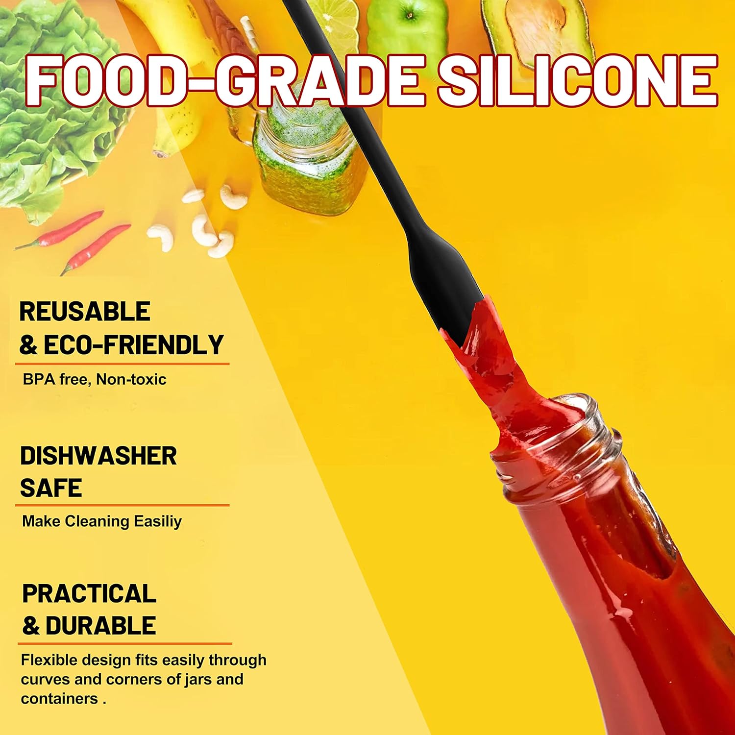 - FLEXIBLE SPATULA - Anaeat silicone spatulas designed with narrow soft heads and long body that can reach many bottles and jars to get every drop out of your container. UPGRADED PROPER BALANCE BETWEEN FLEXIBLE AND STURDY