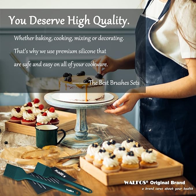 - ★Upgraded ONE-PIECE DESIGN & STAINLESS STEEL CORE TECHNOLOGY - Walfos basting brush,Owing to ONE-PIECE design, the silicone bristles will not break or shed in your food, unlike other bristle brushes. No bacteria will be stuck in the silicone basting brush and keep your food safe. The handle built with internal steel core results in a solid durability to our basting oil brush, it is also long enough to get a firm grip, never break and rust.