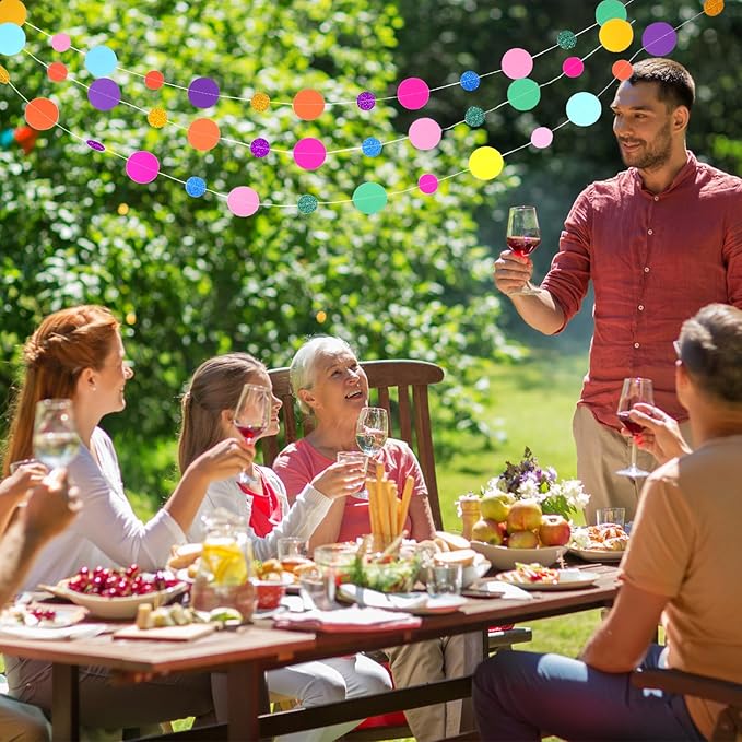 Outus 20 Pieces Colorful Dots Paper Garland Round Glitter Garland Hanging Confetti Streamers Backdrop Decoration for Birthday Classroom Candy Sprinkles Trunk or Treat Party (Rainbow)