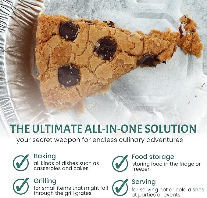 - ๐๐ฎ๐ธ๐ฒ ๐ฃ๐ฎ๐ป - Elevate your cooking game with our round foil pans with lids - built to withstand soaring high temperatures and deliver perfectly baked brownies, lasagnas, cookies, casseroles, and cakes!