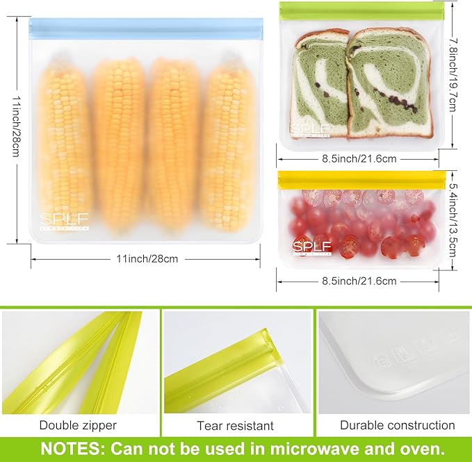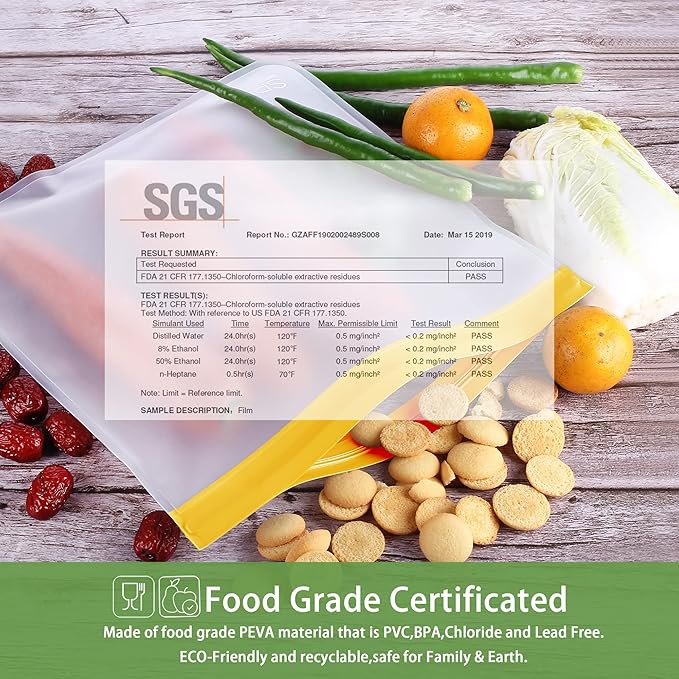 - 【FOOD GRADE MATERIAL】 Choose SPLF brand for TRULY food-grade reusable storage bags. Made of food-grade PEVA material that is PVC, BPA, Chloride and Lead free. Healthy and safe for family and earth.