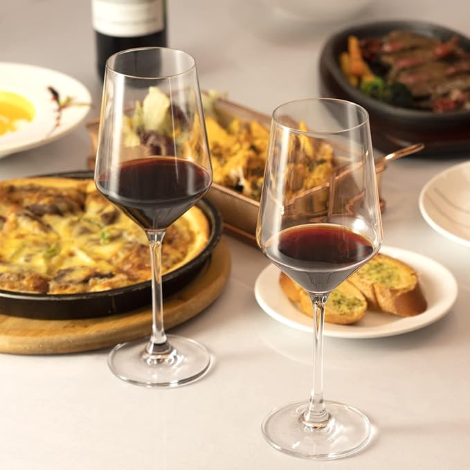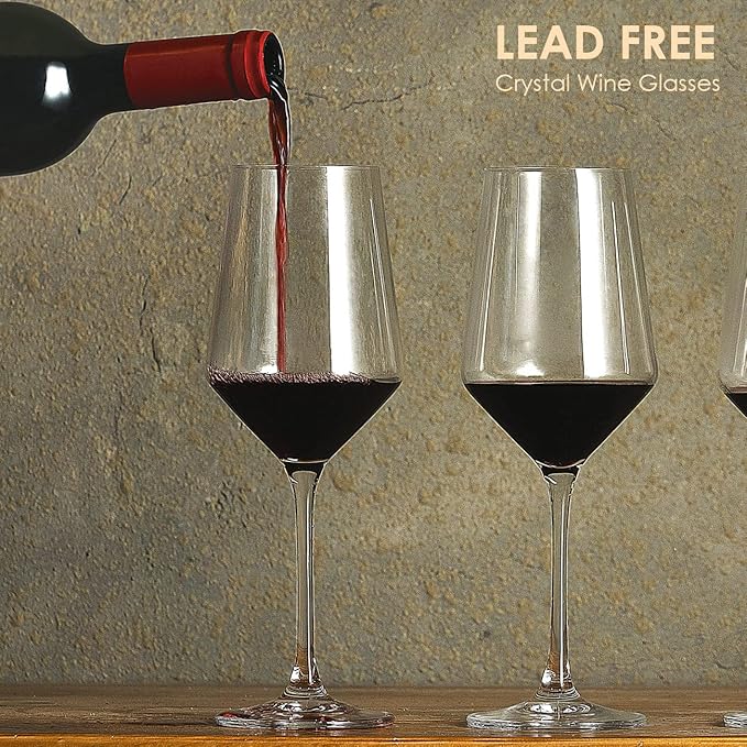 - Crystal Glass - The red wine glass is made of crystal lead-free glass, which is BPA free and makes the glass bright.It's more like a artwork where you can enjoy the wine with your friends and admire the wine glass.