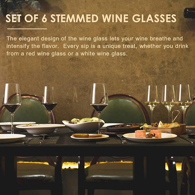Wine Glasses Set of 6,Long Stem White/Red Wine glasses,14oz Hand Blown Premium Crystal Wine Glass,Gift Packing Burgundy Glasses