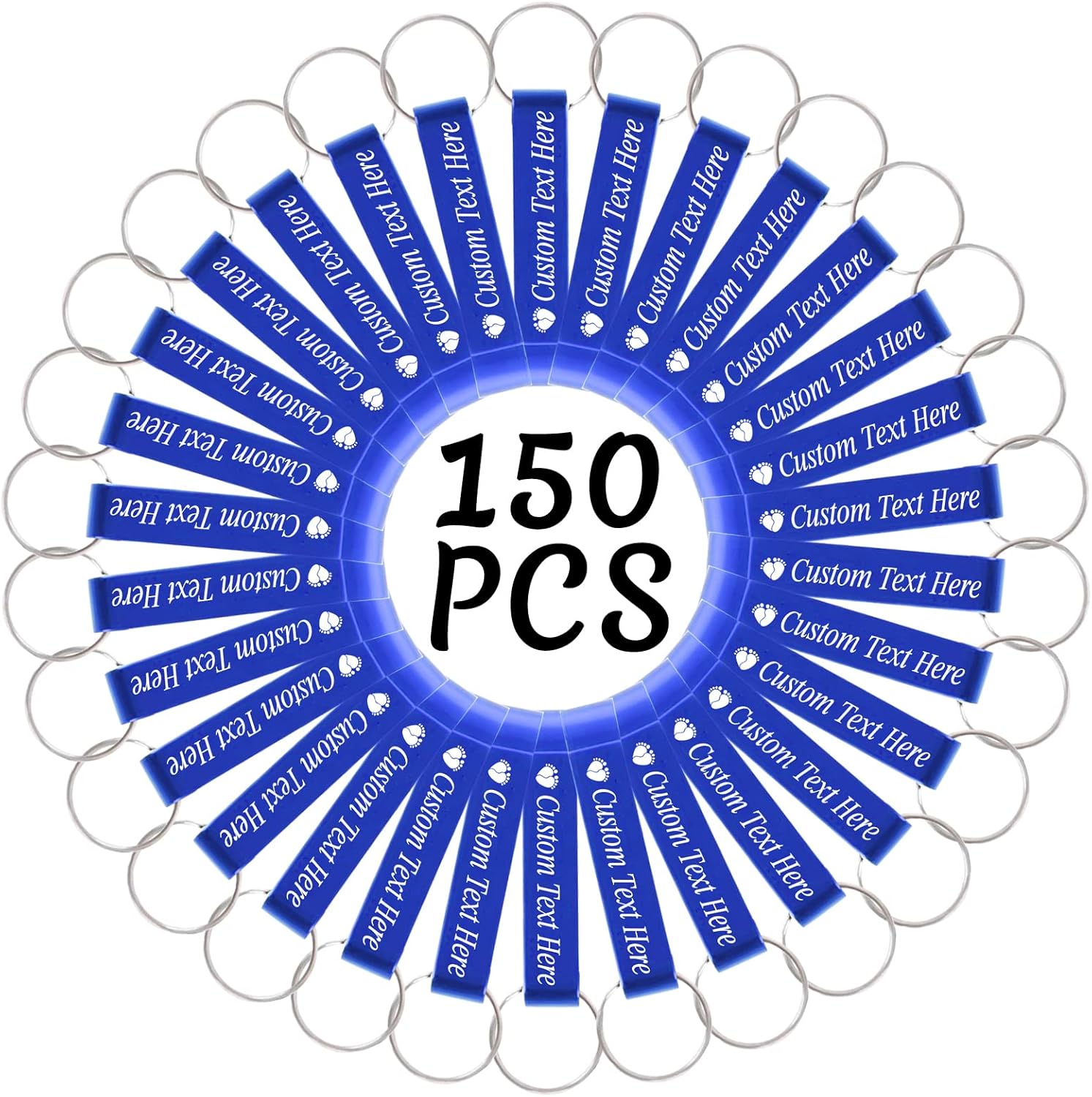 150PCS Personalized Bottle Opener Keychain Bulk Custom Beer Bottle Opener with Logo Text Engraved Wedding Bottle Opener Favors Customized Gifts for Guests Baby Shower Birthday Party-Blue