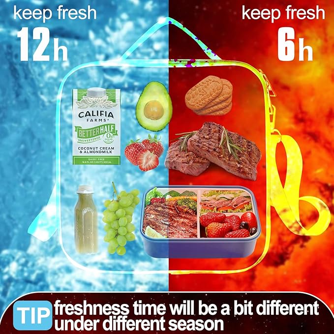 - CONVENIENT ZIPPER CLOSURE: The small lunch bag features a double zipper closure to keep items safe while traveling. The ice pack can be placed on the back and unzipped to fully open for easy packing and unpacking, the secure zipper closure ensures smooth opening, tear resistance and maximum durability. (Age:over 3 years old)