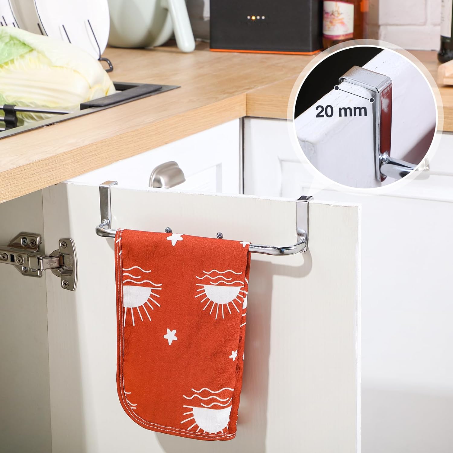- Products include: you will receive 2 pieces door kitchen towel rack that can be quickly and easily hung over the kitchen door, ideal for small spaces with limited storage space, and provide the convenience you need to dry your towels; Note: suitable for doors up to 2 cm/ 0.8 inch thick