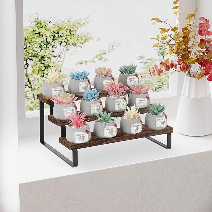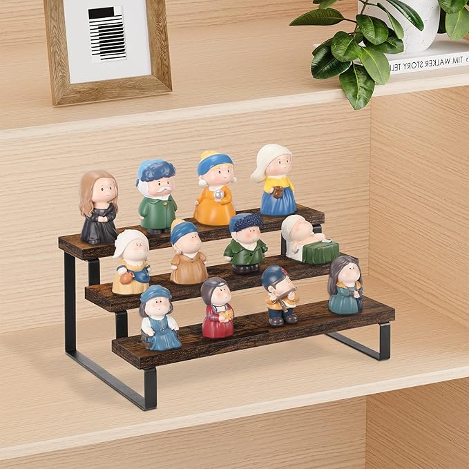 - Convenient Design: The stepped design makes efficient use of your counter space. This wooden display riser is a great idea for displaying toy figurines in cabinets, celebrating party desserts, and cosmetics on the dresser. The raised tiers help to create an eye-catching feature for your items.
