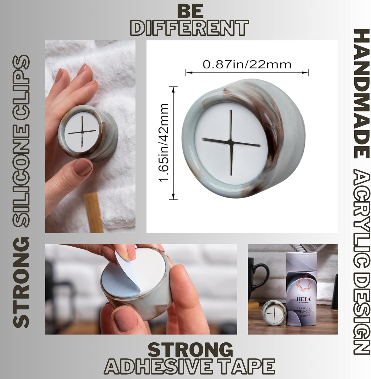 - Elegance & Premium Design - Our towel hooks feature a premium and exclusive design with acrylic body that is both elegant and durable. Patterns may differ from what is shown in the picture, as it is a product-specific application. Unlike similar hangers, our product uses high quality materials for long-lasting use. You will appreciate the premium feel and user experience. You are holding our product in your hand.