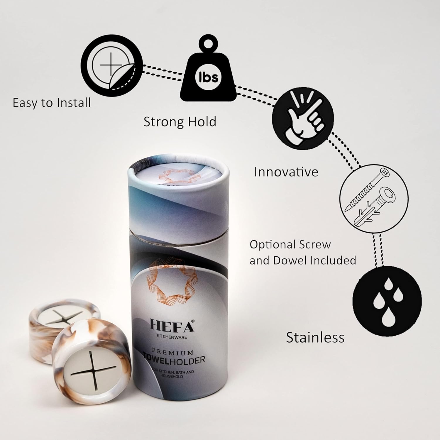- Gift-Ready - Our towel hooks make a great gift thanks to the high-quality, specially designed paper tube packaging. They're perfect for newlyweds, home changers, and anyone who spends time in the kitchen. Plus, we offer a warranty and are committed to 100% customer satisfaction.