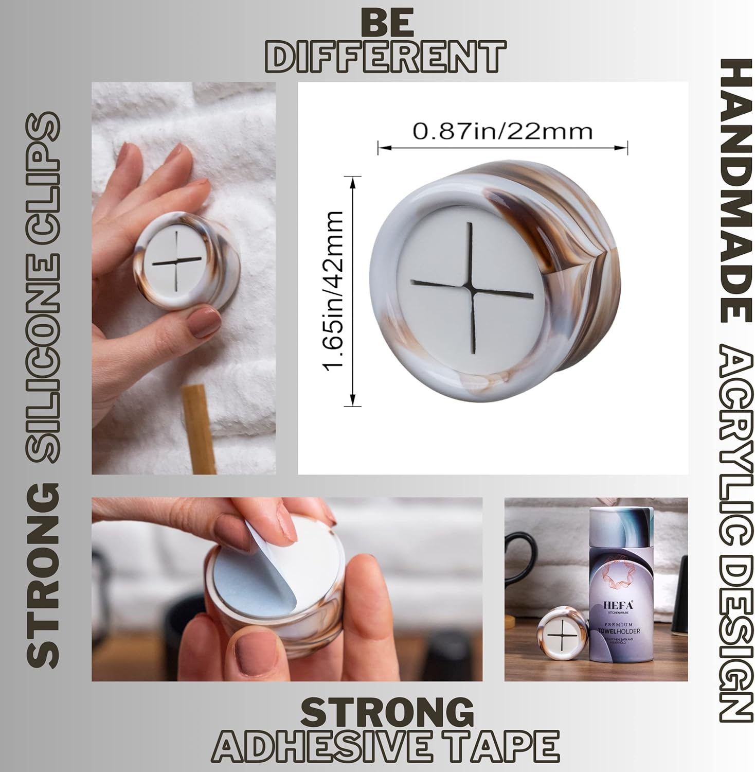 - Elegance & Premium Design - Our towel hooks feature a premium and exclusive design with acrylic body that is both elegant and durable. Patterns may differ from what is shown in the picture, as it is a product-specific application. Unlike similar hangers, our product uses high quality materials for long-lasting use. You will appreciate the premium feel and user experience. You are holding our product in your hand.