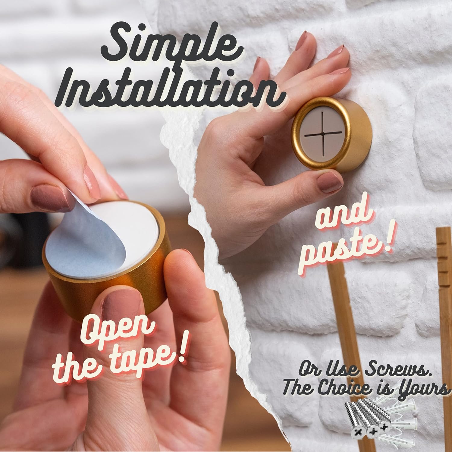 - Important Details - Our towel hooks come with screws (Kale Brand) and dowels, and self-adhesive tape (Orafol Brand) has been applied to the product. The double-sided tape is suitable for towels 2 pounds and lighter, but for heavier towels, it's recommended to mount with screws.