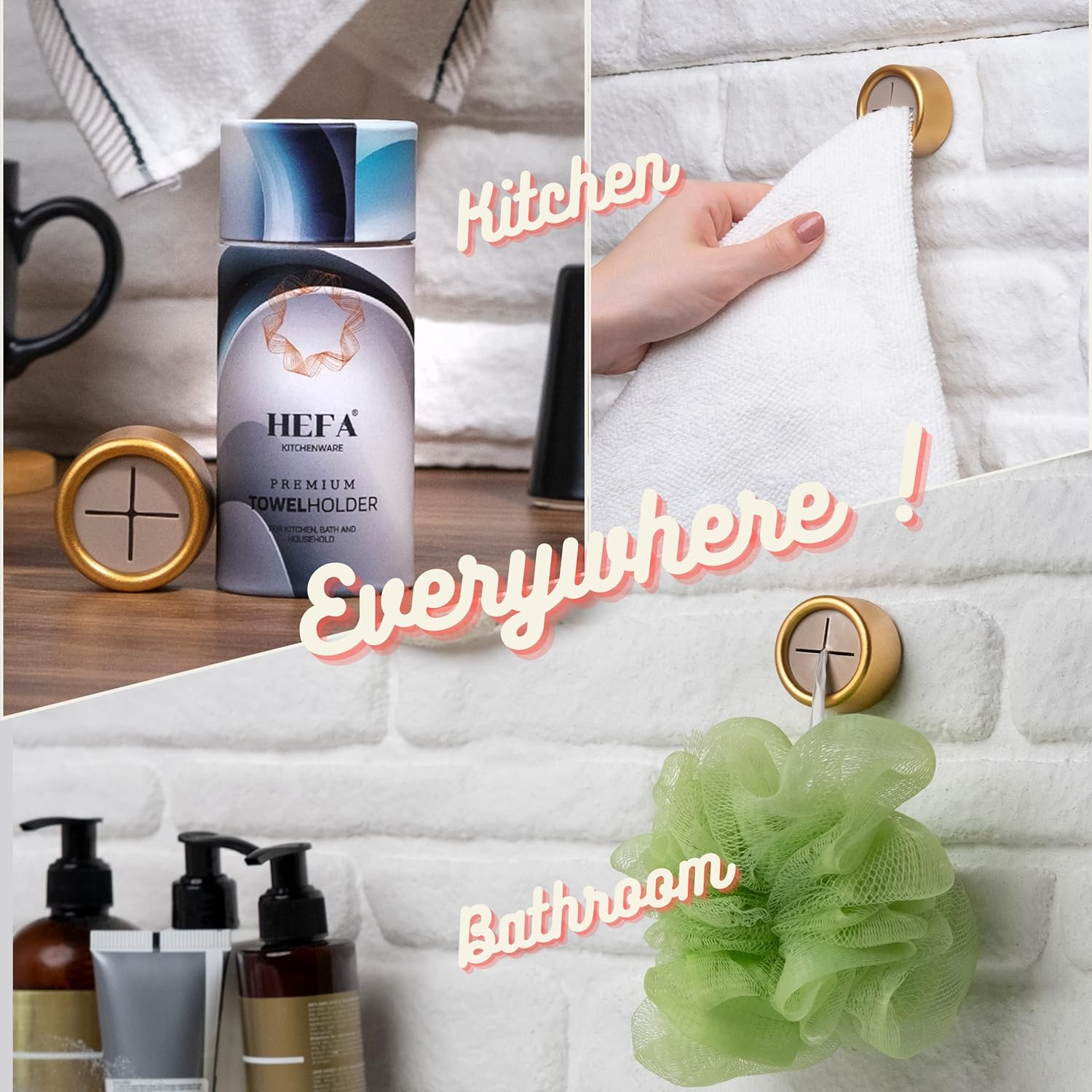 HEFA Towel Holder, Towel Hooks, Dish Towel Holder, Kitchen Organization, Bathroom Accesories, Kitchen Towel Hook, Kitchen Towel Holder, Christmas Gift, Kitchen Gadgets 4 Pack