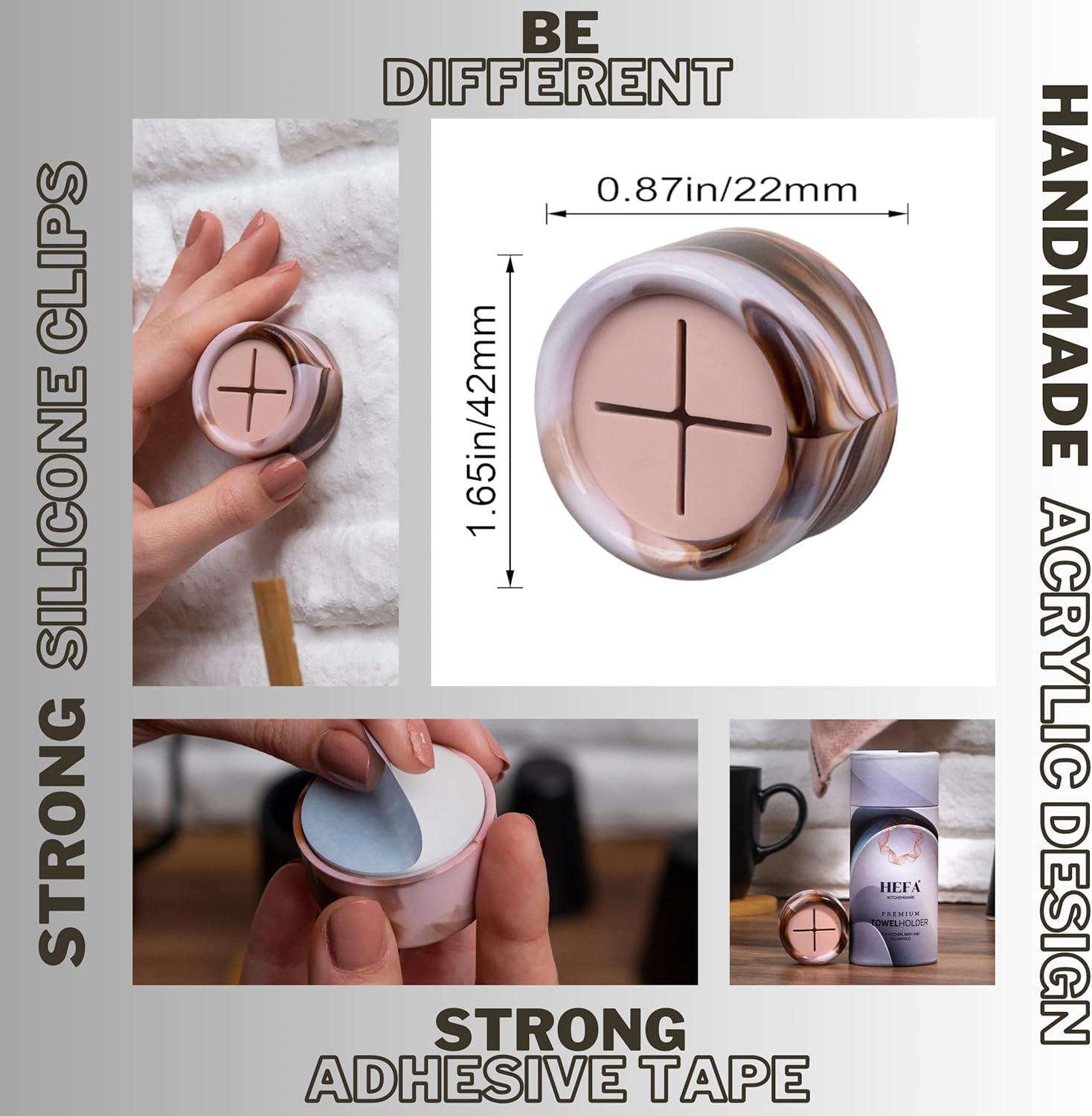 - Elegance & Premium Design - Our towel hooks feature a premium and exclusive design with acrylic body that is both elegant and durable. Patterns may differ from what is shown in the picture, as it is a product-specific application. Unlike similar hangers, our product uses high quality materials for long-lasting use. You will appreciate the premium feel and user experience. You are holding our product in your hand.