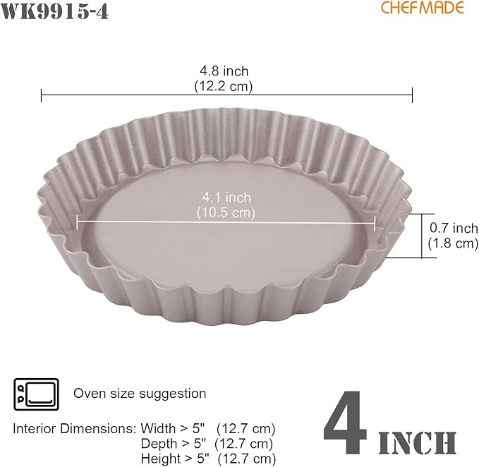 CHEFMADE Round Tart Pan, Non-Stick 4 Inch 4Pcs Quiche Pan