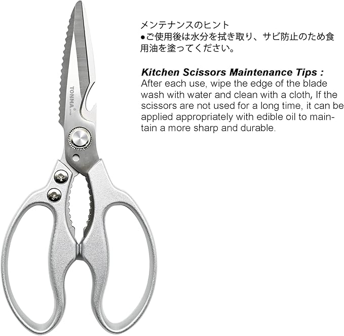 - [ RESTAURANT GRADE KITCHEN SHEARS ] - The blades of kitchen shears heavy duty powerful are made of high-strength Japanese SK4 heavy duty stainless steel (4mm blades thickness, HRC: 60±1), the TONMA multipurpose kitchen scissors all-purpose have heavy-duty built quality lasts a lifetime, great as herb scissors, cooking food scissors, utility scissors, craft scissors, tailor fabric scissors.