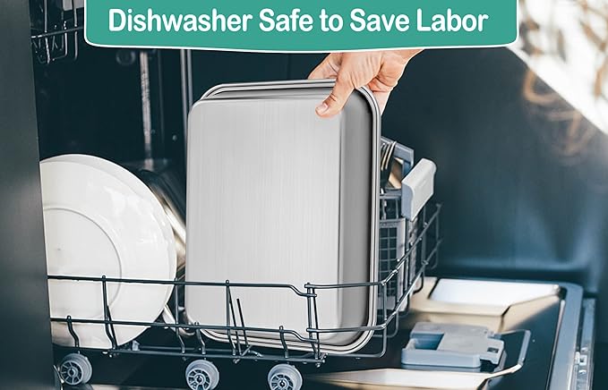 - EASY CLEAN – Smooth brushed surface helps easily release food and reduces the risk of sticking on the stainless lasagna pan, Easy to clean and dishwasher safe to make cleaning is a breeze, Let you enjoy the baking time but less hassle