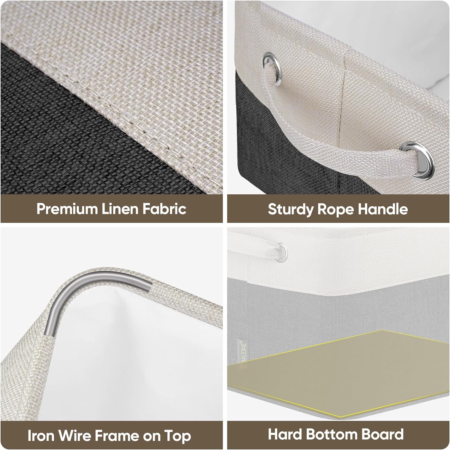 - [DURABLE MATERIAL] Made from premium quality linen fabric, storage baskets for shelves are built to last. The fabric is sturdy, resistant to wear and tear, and easy to clean. You can simply wipe them down with a damp cloth, and these organizer bins will look as good as new!