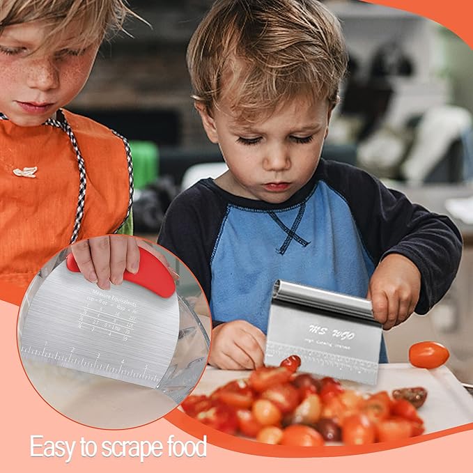 - Heal your baking daily - Dough scraper and Dough Cutter are two essential kitchen tools. Both Bench Scrape and dough scraper have clear scales that can cut dough evenly. This set of dough cutters is very suitable for professional bakers and novices.