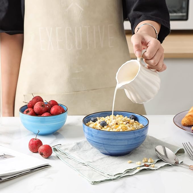 Selamica Ceramic 12 Oz Dessert Bowls Set, Small Bowls for Kitchen, 4.7 Inch Ice Cream Bowls for Snack Side Dishes Dips, Microwave Dishwasher Safe, Set of 6, Gradient Blue