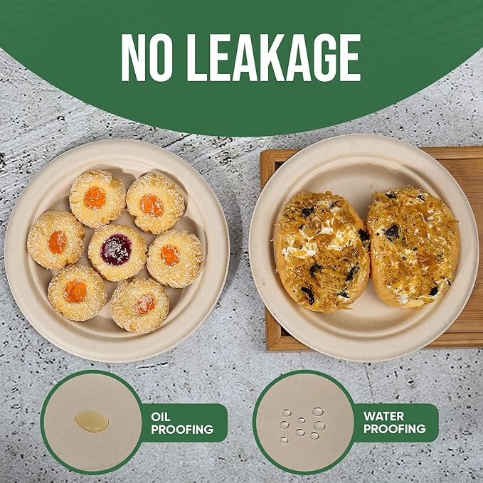 - COST-EFFECTIVE AND BULK-FRIENDLY OPTION: TaidMiao bagasse disposable utensils come in a pack of 100, so you can spend less time worrying about running out of plates and more time enjoying your food and company. And because each paper plate is water and oil-proof, you can use them for a variety of foods without any worry that they’ll get soggy or fall apart.