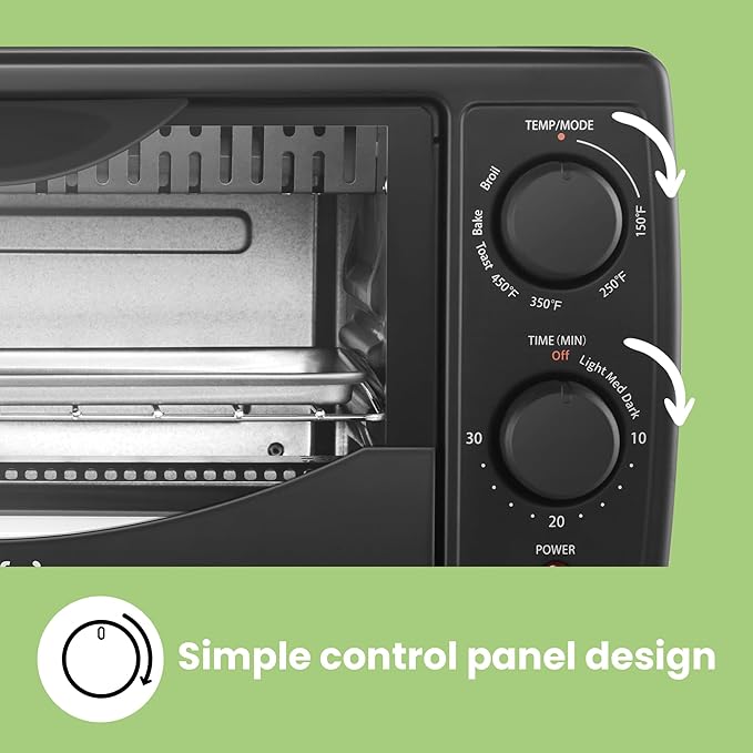 - 【EASY-TO-USE BUILT IN TIMER】The 30-Minute-Timer includes precise toast shade preference and stay-on feature for longer baking tasks. This compact toaster oven has simple controls that are straightforward and easy to use.