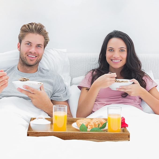 - MULTIFUCTIONAL LARGE WOOD TRAY: This decorative large serving tray is perfect for serving breakfast, lunch, dinner snacks appetizers, or any meal on your bed, dining table, coffee table, or anywhere you want! Ideal for kitchen, commercial use, family events, parties, offices, and more!