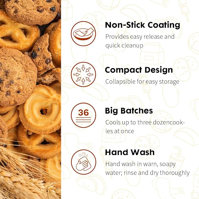 - Space Saving: Our cooling rack for baking with collapsible designed, when not in use, the cooling rack can be folded down into one compact piece for easy storage, without taking up lots of space, also easy to carry when you have some outdoor activities, like camping, grilling, outdoor party, it can be use as a storage rack to display your food, cake, cookies, grilling, etc