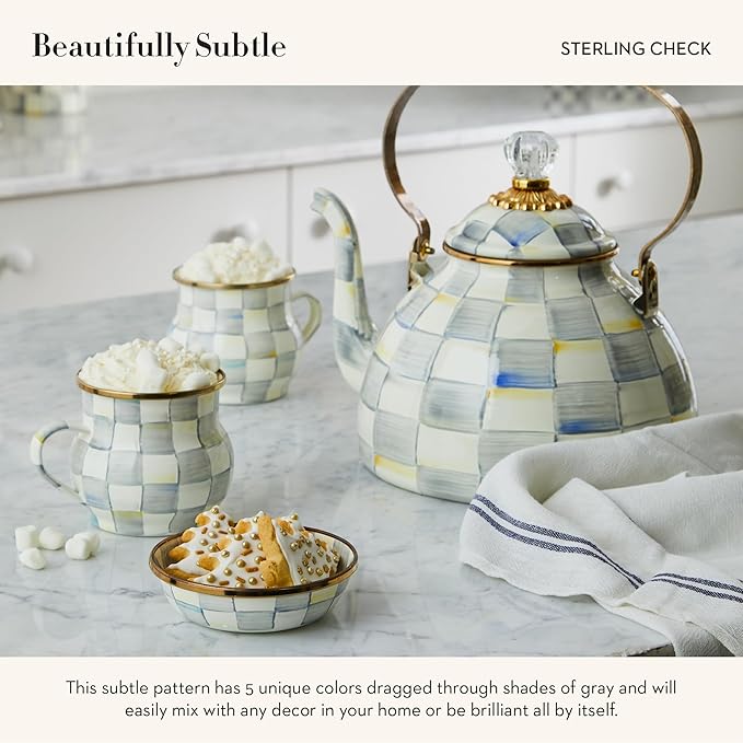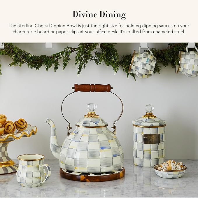 MACKENZIE-CHILDS Enamel Dipping Bowl, Small Serving Bowl for Entertaining, Gray-and-White Sterling Check
