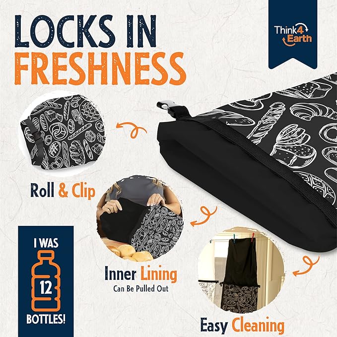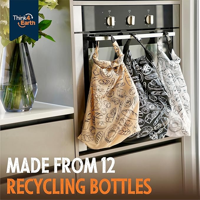 - ECO-FRIENDLY & REUSABLE BREAD BAGS: Opt for our reusable bread bags made from recycled plastic bottles as a planet-conscious alternative to disposable plastics. Contribute to a greener future while keeping your homemade or professional bakery products fresh with Think4Earth's sustainable food storage solutions. Crafted from 12 BPA-free, food-safe recycled plastic bottles, these vegan-friendly, 100% recyclable bags make a positive impact.