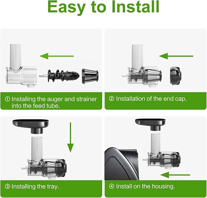 - Safe & Quiet Operation: Our cold press juicer equipped with intelligent protection chips, making it stop automatically for every 20 minutes' operation. 150W motor- less than 60 decibels, small mouth design to put ingredients that prevent your hands getting injured and ensure the ingredients are stoned and peeled for healthier juice. Just enjoying a quiet and safe environment and healthy life when making juice.