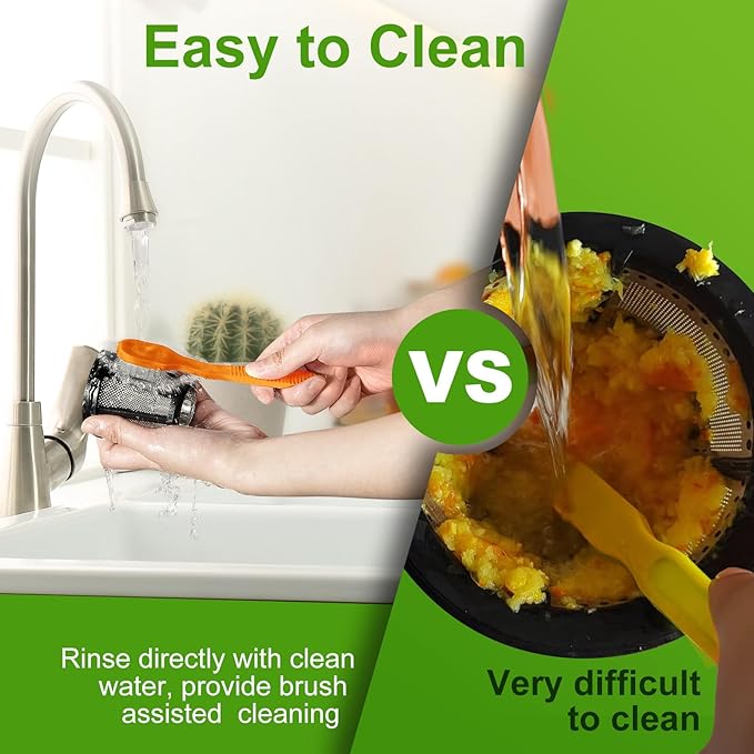 - Quick & Easy to Clean: This juicer machine features a safety lock design, helps you easy to assemble and disassemble in minutes. Has REVERSE FUNCTION to avoid stuck and helps you to clean. All detachable parts are made of high quality Food Grade anti-oxidation materials, easy cleaning with a bonus brush or can be safely cleaned in your dishwasher.